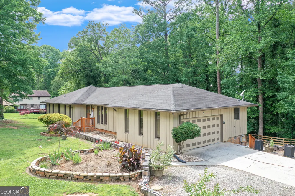 This hard-to-find Ranch-style home with a full finished basement is perfect for separate living! The gravel driveway leads to the basement entrance! This home is in a mature neighborhood 10 minutes from the Mall of GA, 5 minutes from Coolray Field, and a mile from a Collins Hill golf course. This home gives privacy with a den, family room with a wood-burning fireplace, dining room, and kitchen. You will love to sit and relax on the breathtaking screened-in porch looking out to the peaceful wooded area. The home has the primary bedroom and two other bedrooms on the main level. The finished basement can be entered from the inside or outside, showcasing a living room, two bedrooms, two flex rooms large enough for a media room or exercise room, and an office. It also has a large front yard with plenty of parking on the side entrance garage and a wide driveway.